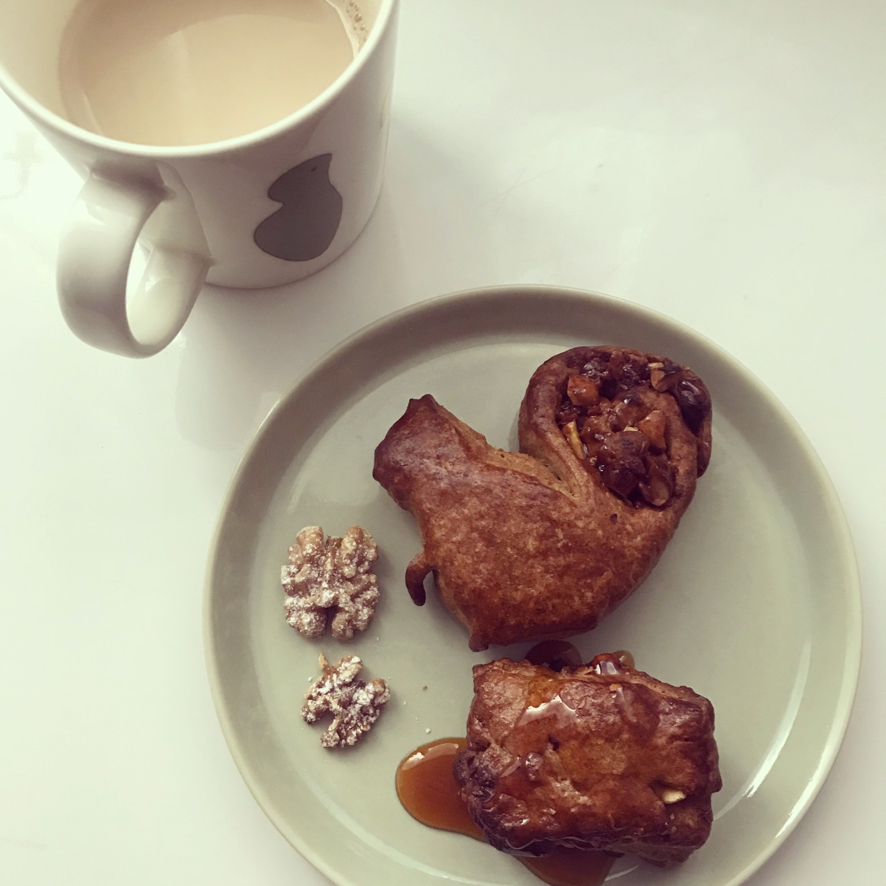 大粒の雪が窓にぶつかる音を聞きながらスコーンを焼いた。しっぽはナッツを巻き、コーヒーの蜂蜜をかけた。