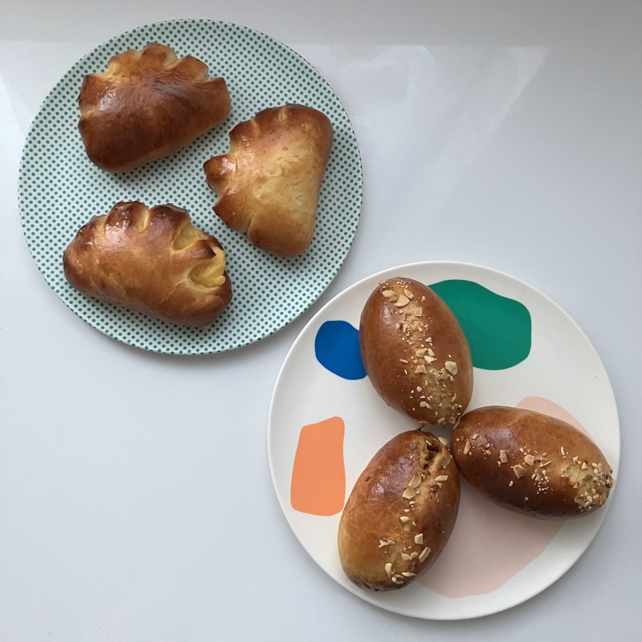 カスタードと肉だねを作ってクリームパンとピロシキ。小さく焼いてあっという間に食べてしまうのが好きだ。