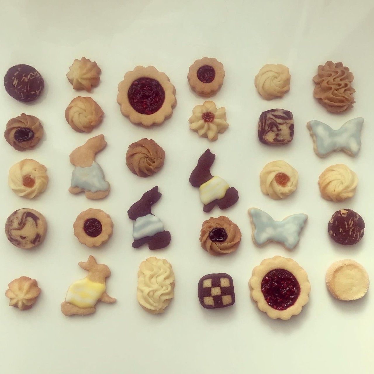 昨日夜まで思いつくままに焼いていたクッキーを並べてみた。