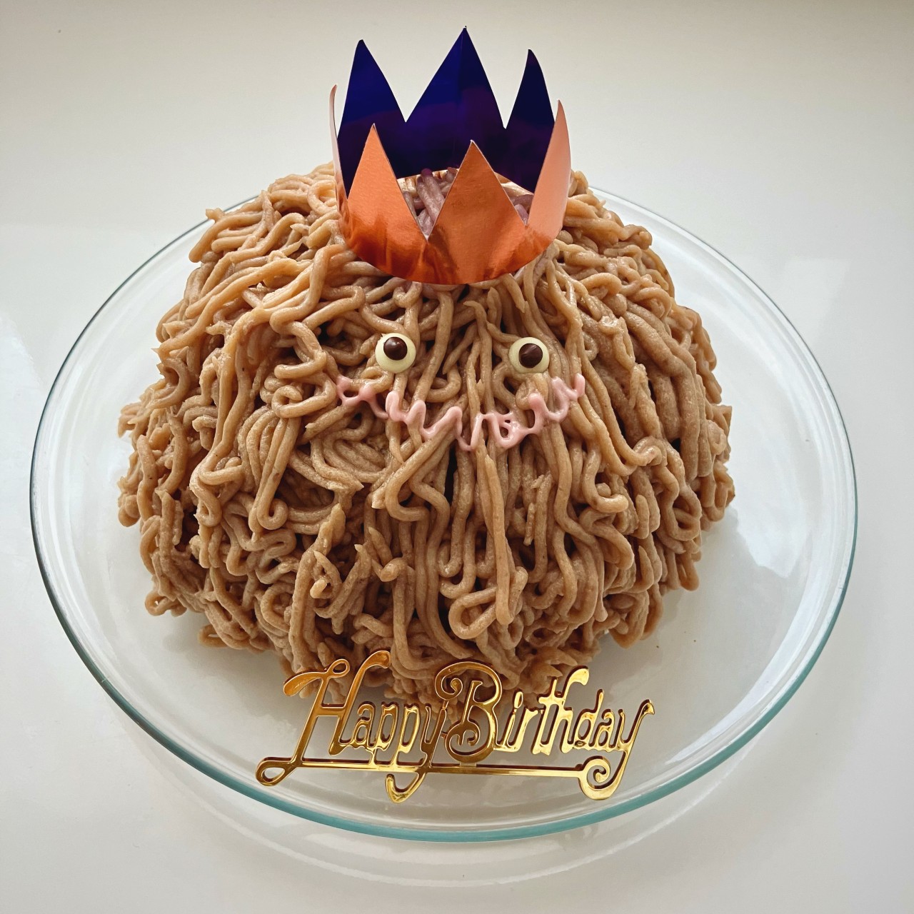 バースデーケーキはリクエストに応えて大きなモンブランにした。