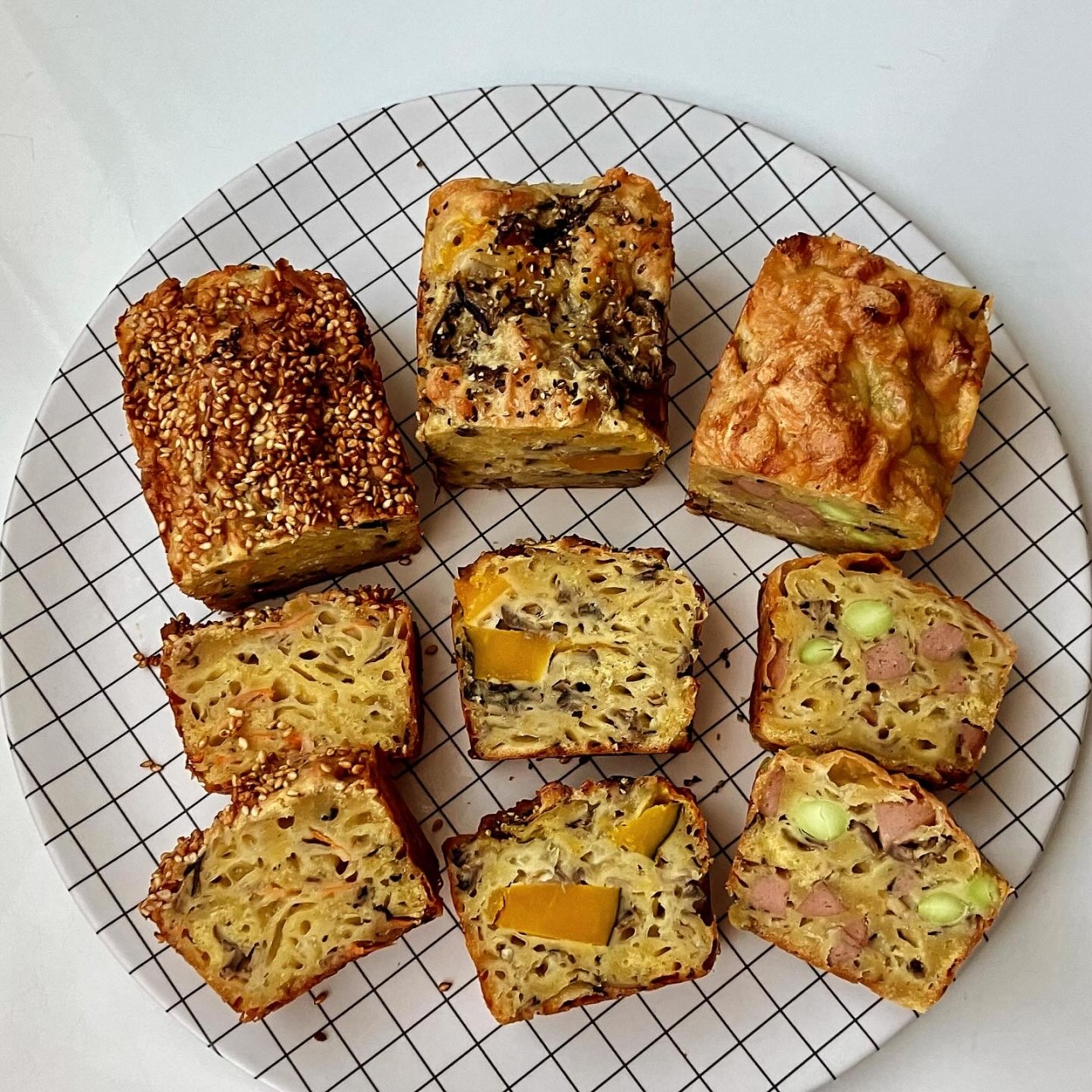 先日つくったひよこ豆粉のケークサレ。冷凍してあり、お腹が空いたらレンジで温める。
