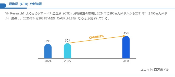 総括すると、温塩深(CTD)分析装置の市場は、2024年の約2.90億米ドル規模から2031年の約4.50億米ドル規模へと成長する見込みであり、2025〜2031年の期間における年平均成長率は約6.8%に相当します。高精度センサ、長期運用性、データ管理・解析機能の強化が今後の市場拡大を支える主要因となる点が示唆されます。