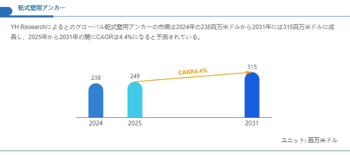 乾式壁用アンカーは建築仕上げの基盤部材として安定した需要を有しており、2024年の約238百万米ドルから2031年の約315百万米ドルへの拡大が想定され、2025年から2031年の年平均成長率は約4.4%と見積もられています。今後は素材・機構設計の改良と品質保証体制の強化、及び用途別に最適化された製品ライン展開と流通戦略が、サプライヤーの競争優位を決定づける主要な要因になると考えられます。