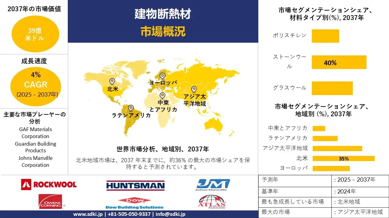 建築用断熱材の世界市場調査、シェア、サイズレポート、成長、需要、トップメーカー - 2025-2037年予測