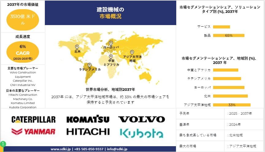 世界の建設機械産業分析レポート、成長、機会、主要メーカー、規模、シェア、トレンド概要 - 2025~2037年予測