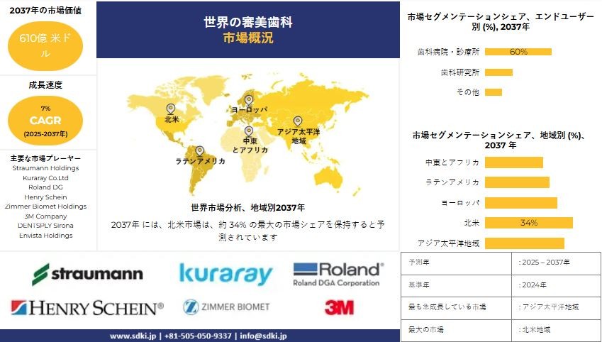 世界の審美歯科産業調査、規模、成長、トレンドレポート、シェア、トップメーカー、洞察分析、2025-2037年予測