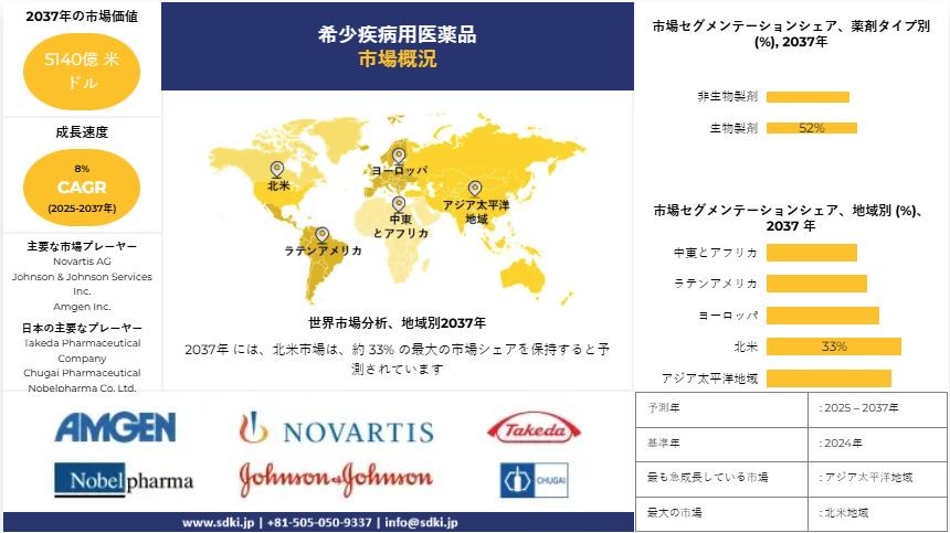 グローバル希少疾患治療薬市場規模調査、シェア、動向、洞察、主要メーカー、需要分析の概要 - 2025年から2037年までの予測