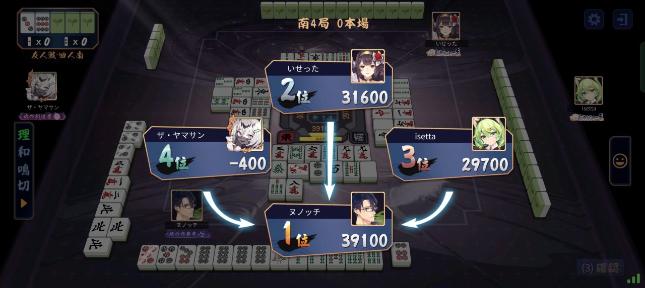 1戦目の展開は熱かった ガッツリ点差が開いてたけど前回に比べたら配牌とか全然良くてちゃんと勝負が出来ていたので日が空いた割にはって感じでした