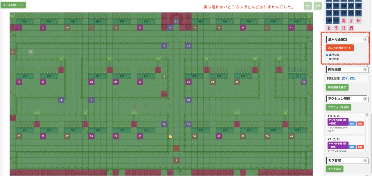 全体図 # 設定内容 # ・通行不可場所 ・タイツ旗の設定 1 2 ・看板の設定