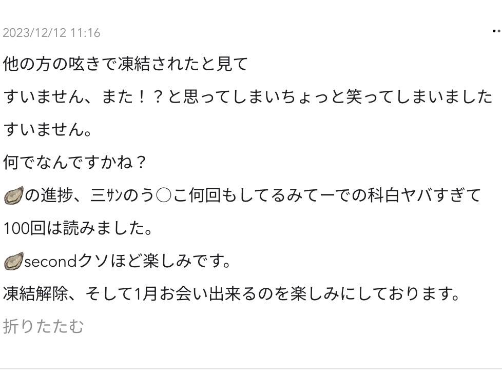 あのさぁ、ワイばっか凍結させちゃいかんでしょw(死にSAW)