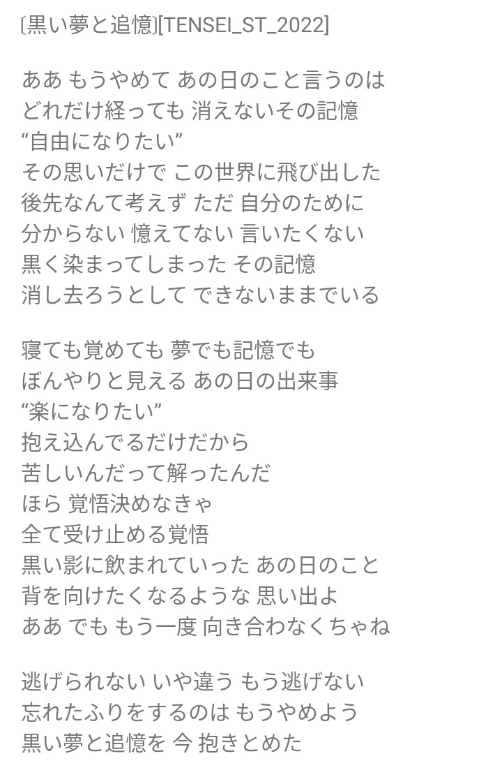 黒い夢と追憶[TENSEI_ST_2022](現在投稿しなおしのためありません)