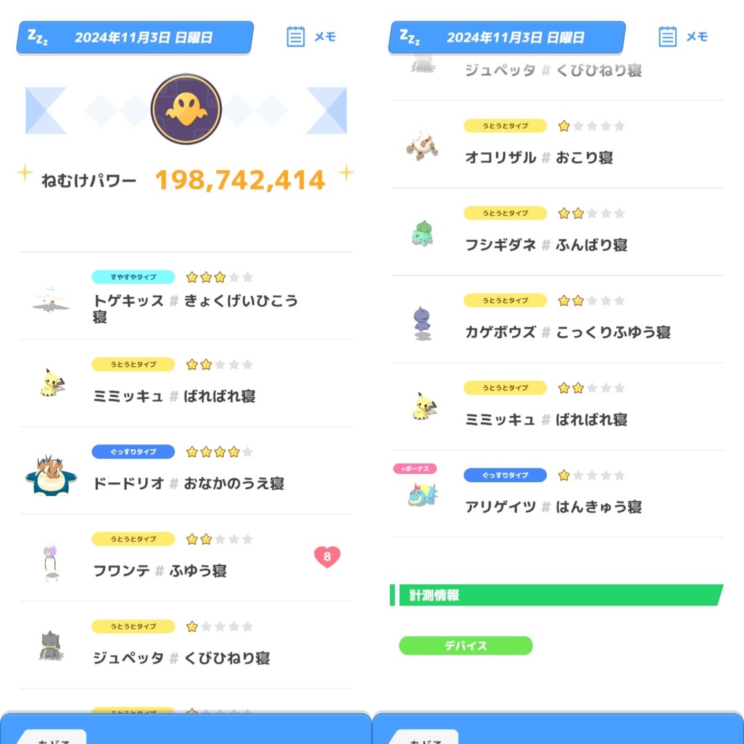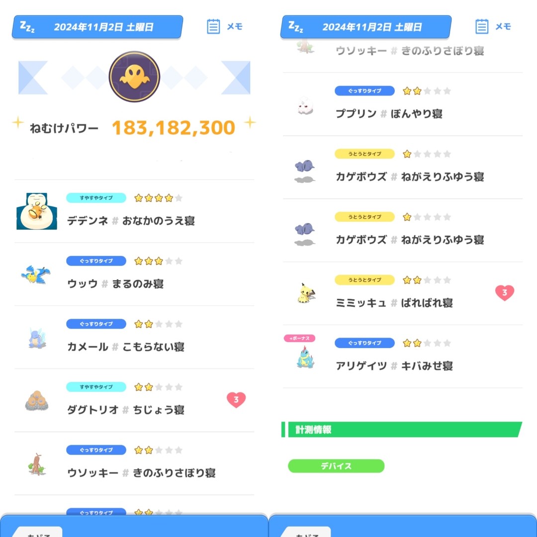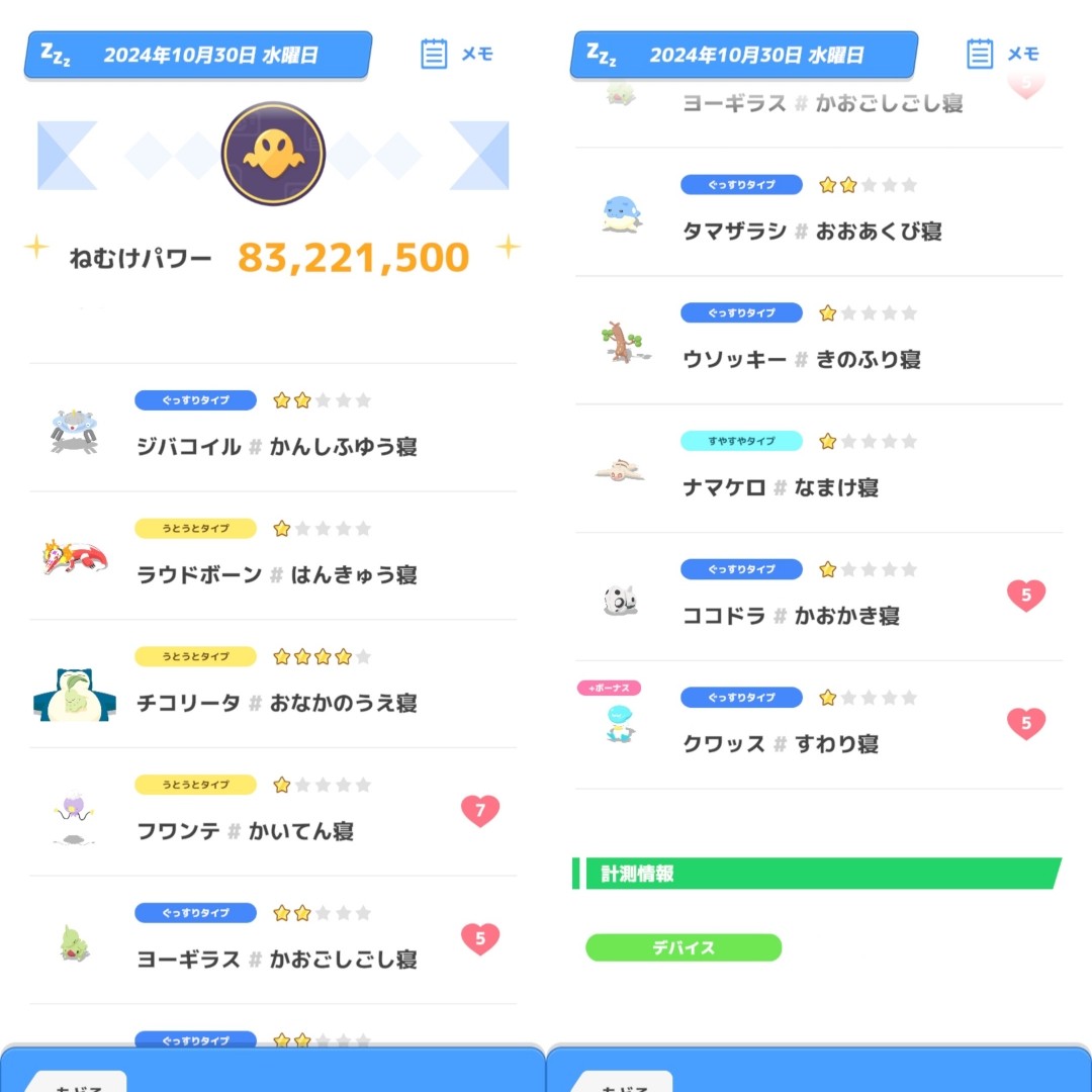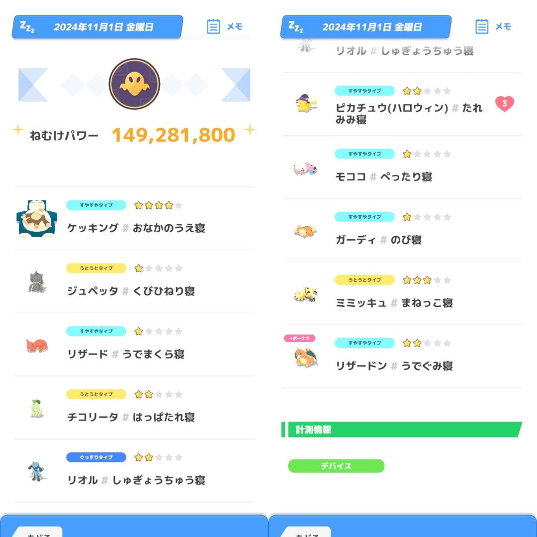 ワカクサで且つカレー週だったのである程度エナジー盛れてラッキーだと思っていたのですが……、月曜日の夜に睡眠計測始めないまま寝落ちするというミスをしてしまいました…。2回目です。
