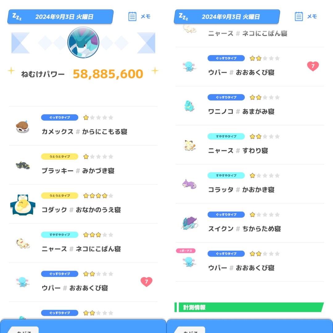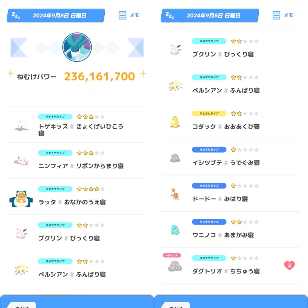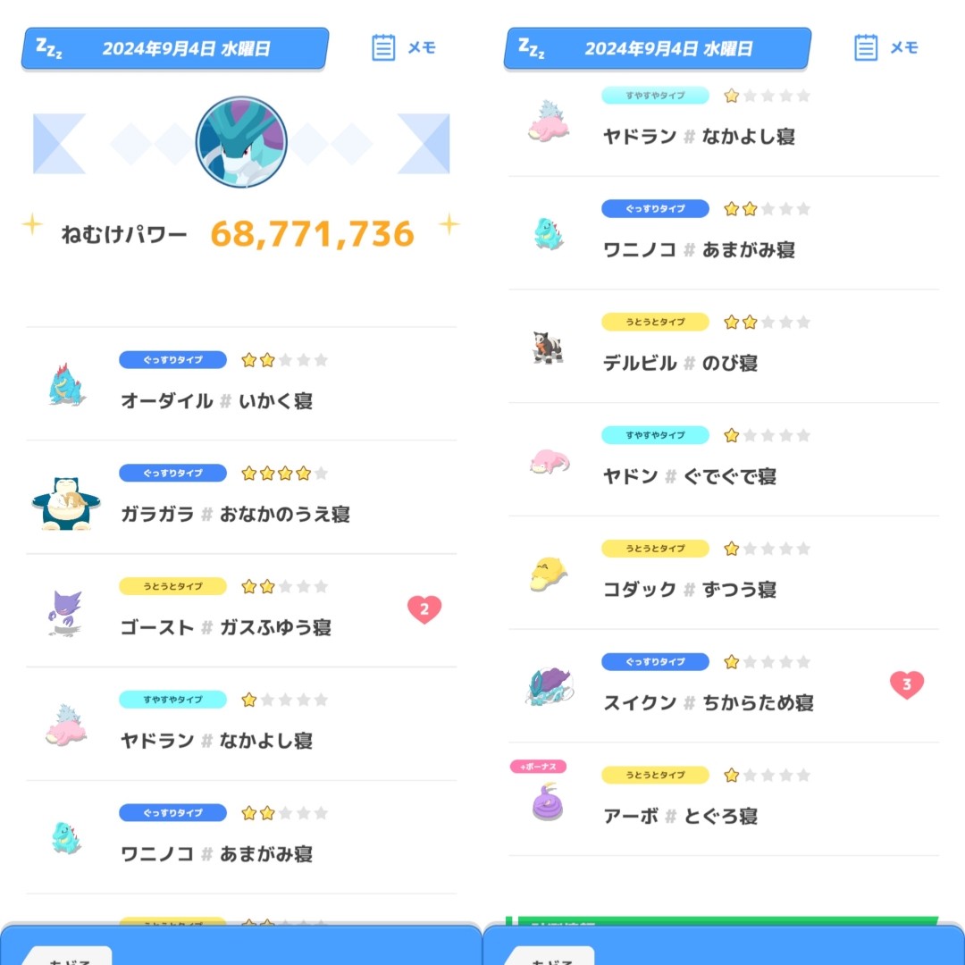 なかなかぐっすりにならず、スイクンが居ないとたてがみも渋かったです。スイクン無しだとたてがみ50~60程。スイクン居て80~90あたりですかね。