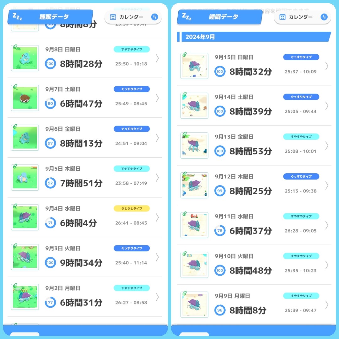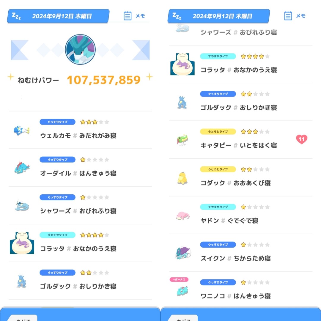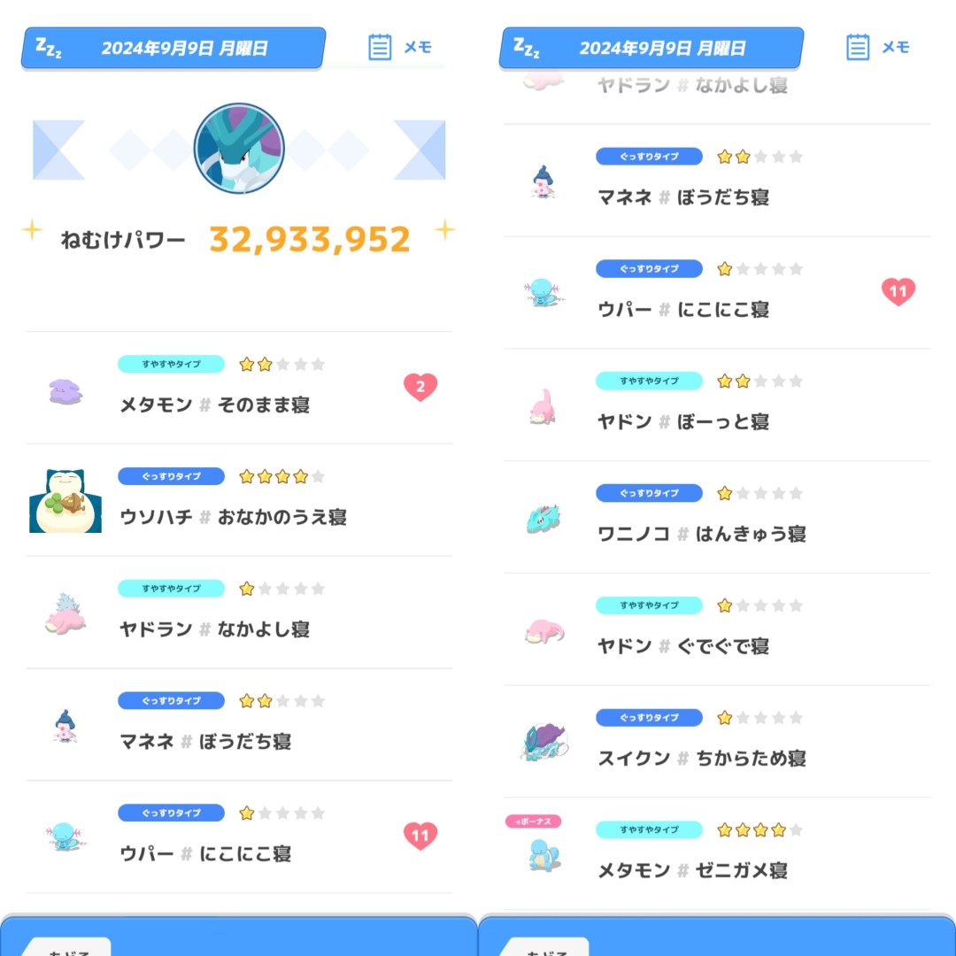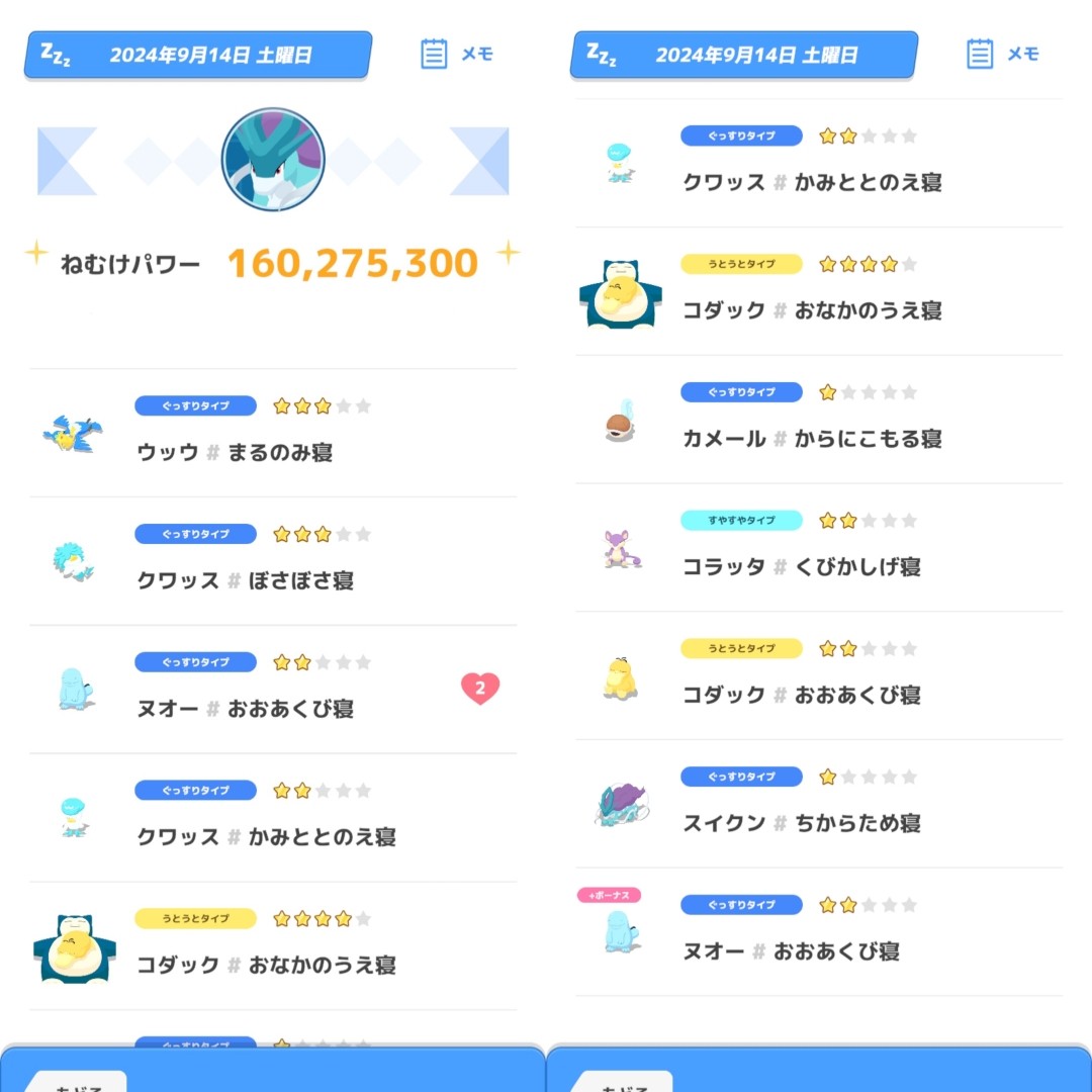 ライコウイベントの時は始めてまもなく、エンテイイベントは始めて2ヶ月ほどで、寝顔コンプリートには至らなかったのを思うと、うちの子達が成長したのかな?と思います。