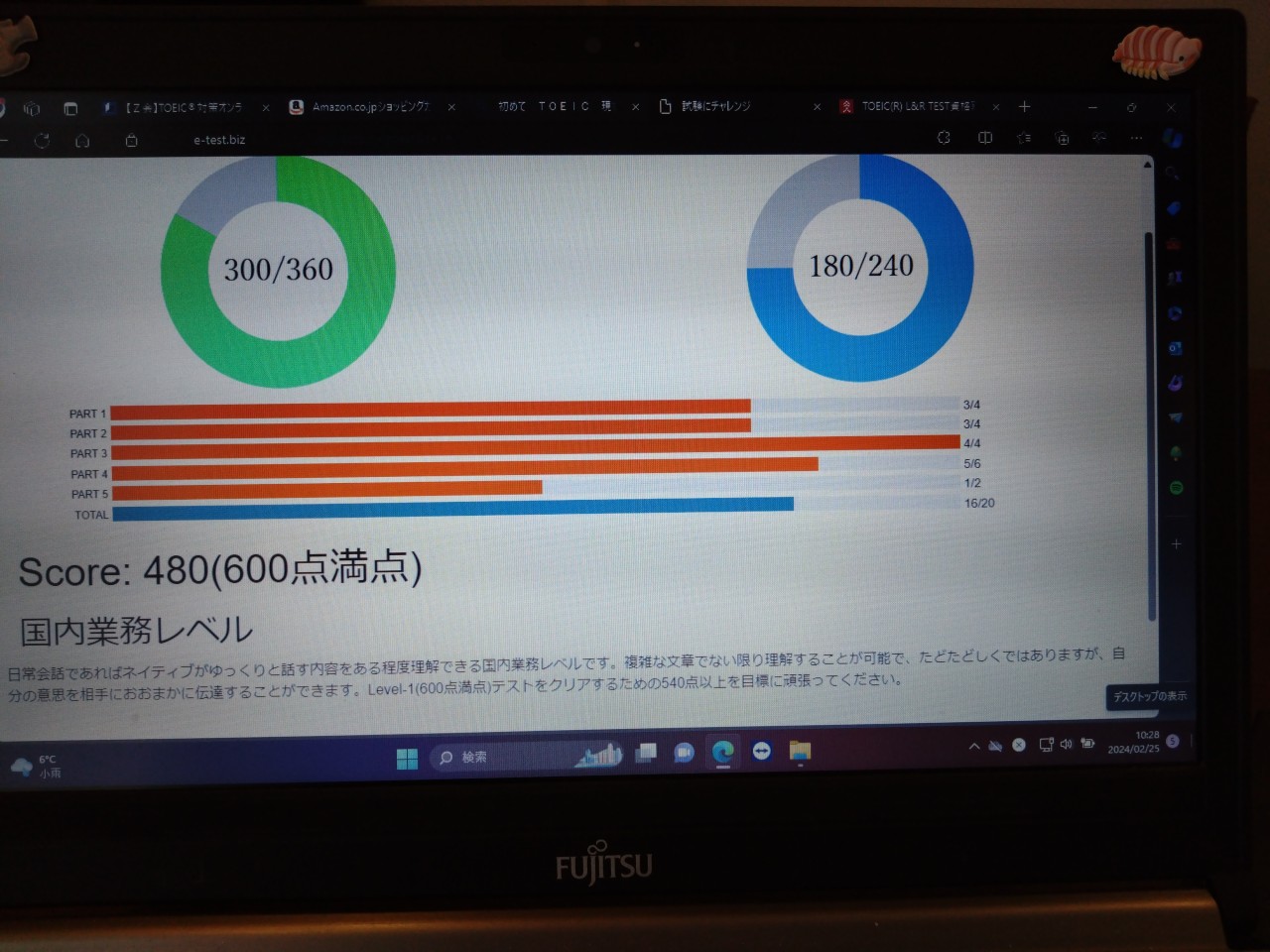 履歴書に書けるのは何点か。ググると最低600点から書ける、という。