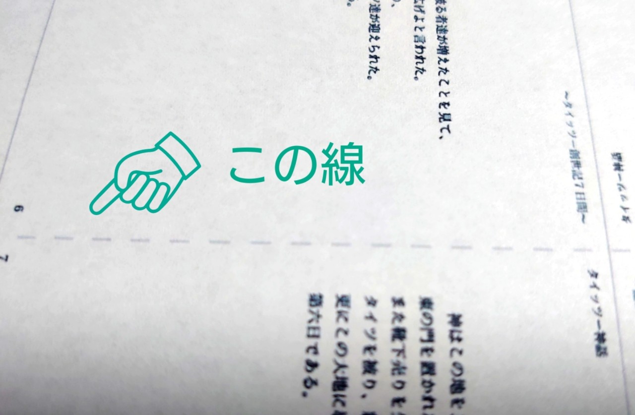 縁まで線が無いので勘とセンスで真っ直ぐ続くように切ってください。