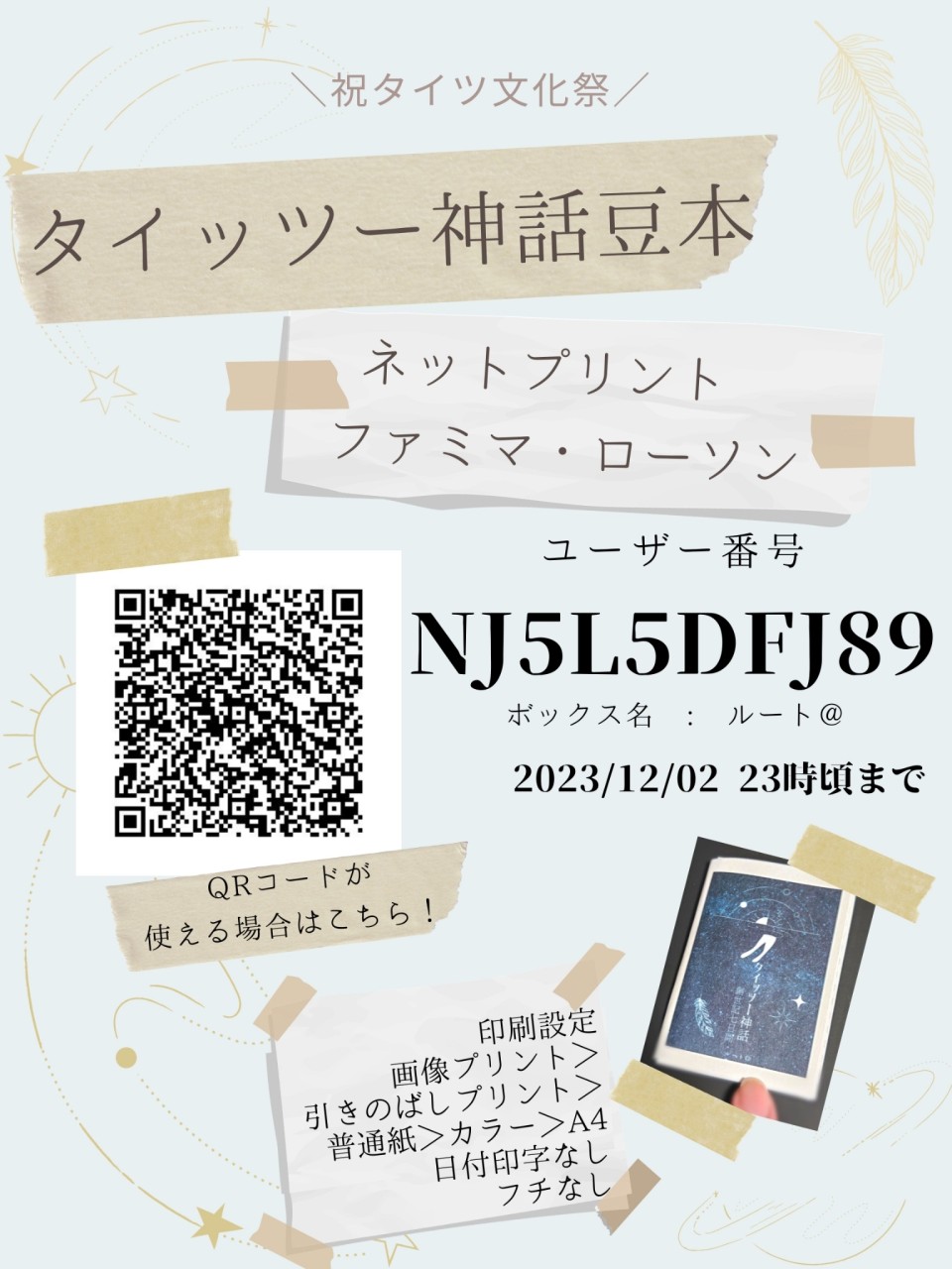 居るか分かりませんが、自分の書いたタイッツー神話を好きと言ってくれた方で紙媒体で持ちたいという稀有な方に、この情報が届きますように。