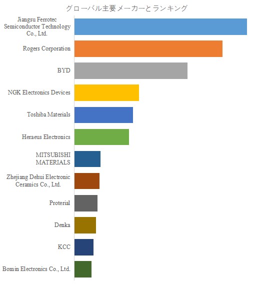 YHResearchのトップ企業研究センターによると、AMBセラミック基板の世界的な主要製造業者には、Jiangsu Ferrotec Semiconductor Technology Co., Ltd.、Rogers Corporation、 BYD、NGK Electronics Devices、Toshiba Materials、Heraeus Electronics、Zhejiang Dehui Electronic Ceramics Co., Ltd.、MITSUBISHI MATERIALS、Proterial、Denkaなどが含まれている。2024年、世界のトップ10企業は売上の観点から約87.0%の市場シェアを持っていた。