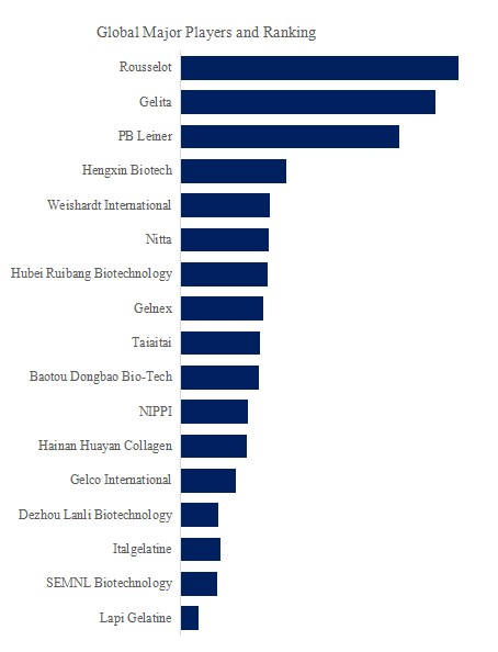 YHResearchの主要企業調査センターによると、コラーゲンの主要なグローバルメーカーには、Rousselot、Gelita、PB Leiner、Hengxin Biotech、Weishardt International、Nitta、Hubei Ruibang Biotechnology、Gelnex、Taiaitai、Baotou Dongbao Bio-Techなどが含まれます。2024年時点で、グローバルな上位5社の売上高におけるシェアは約44.0%でした。