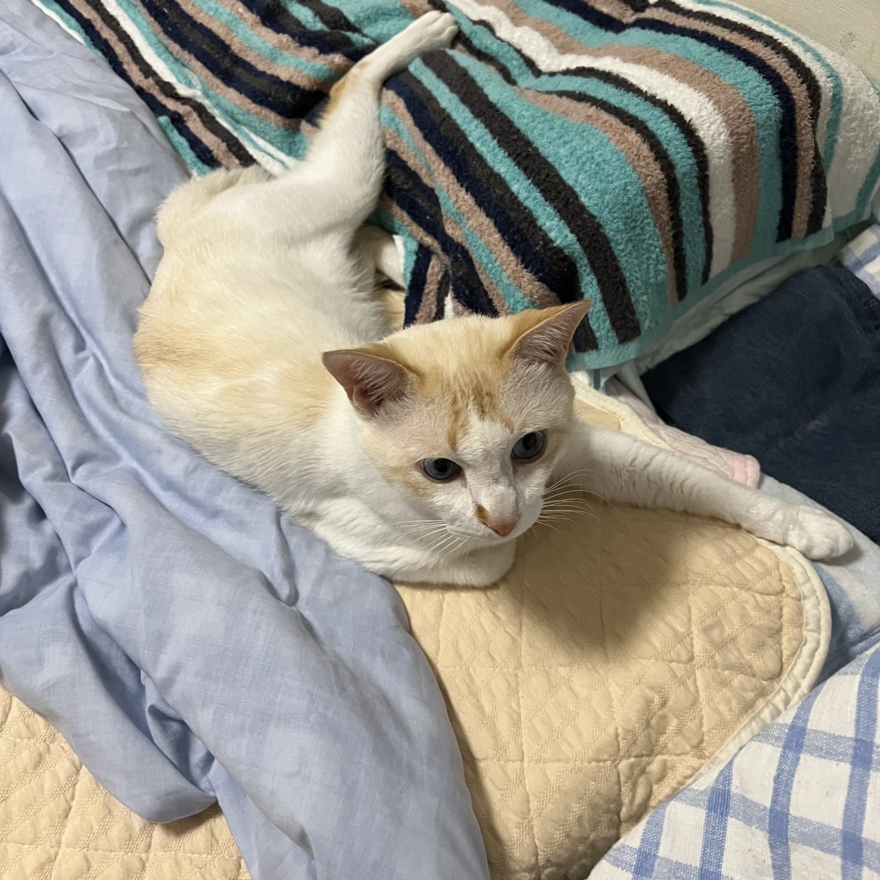 2012年に4ヶ月の青い目の1にゃんが我が家に来ました。