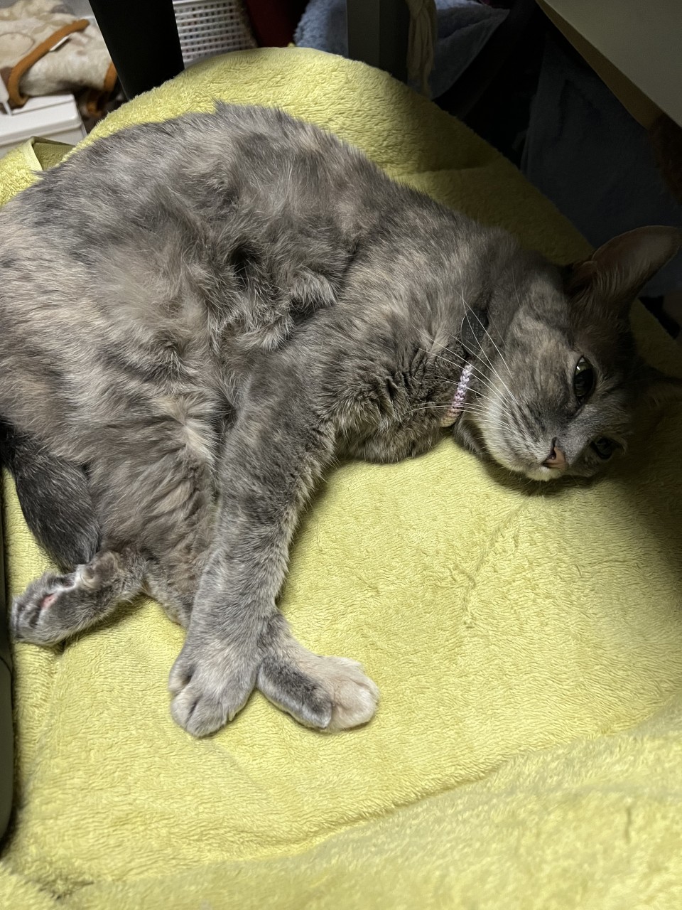 夜遅く帰宅したので、猫を撫でて満喫。