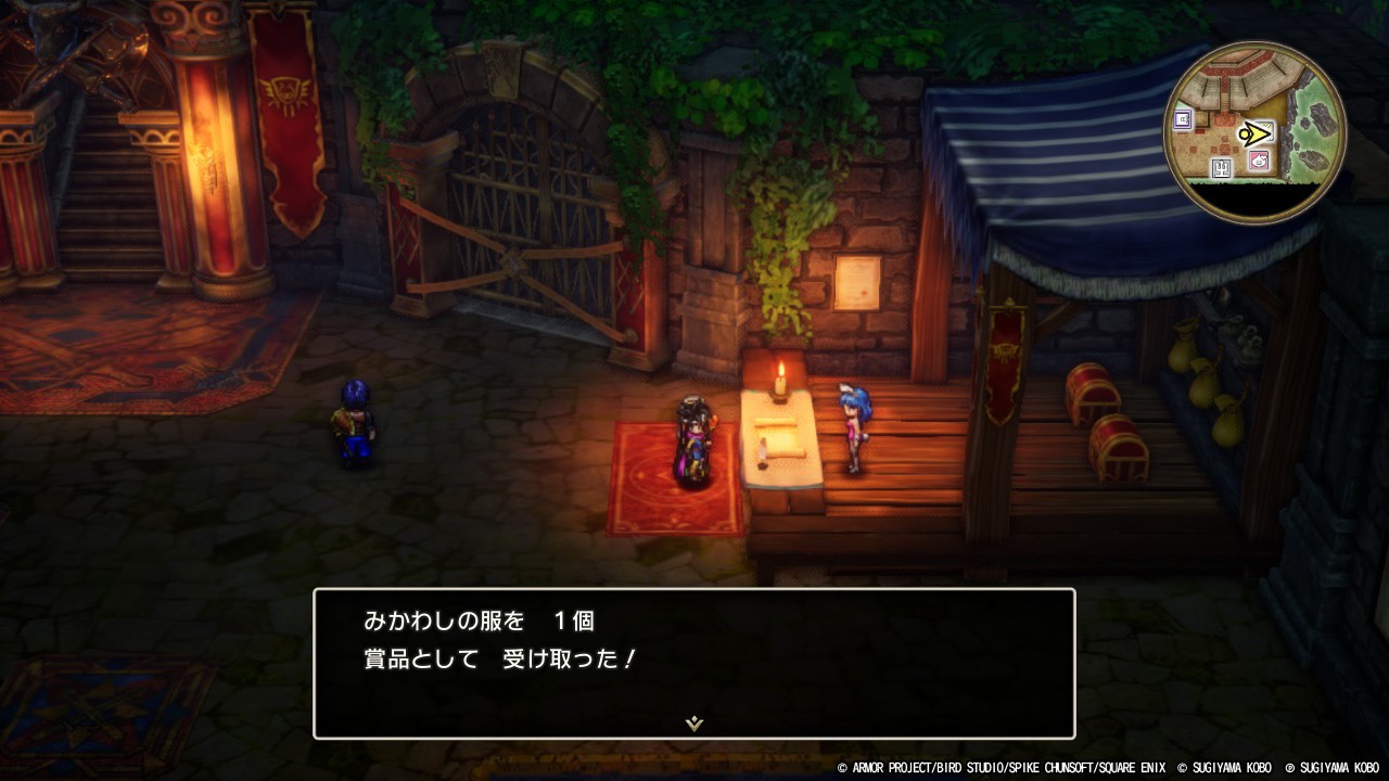 勇者:くさりがま、せいどうのたて、皮のぼうし、みかわしの服(景品)