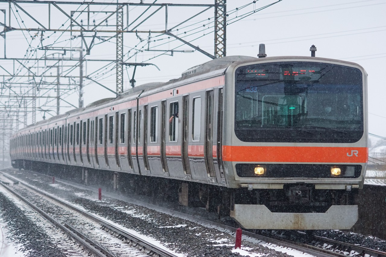 今年の正月を上回る規模の降雪に感化されて75レのPF代走を撮影しました。