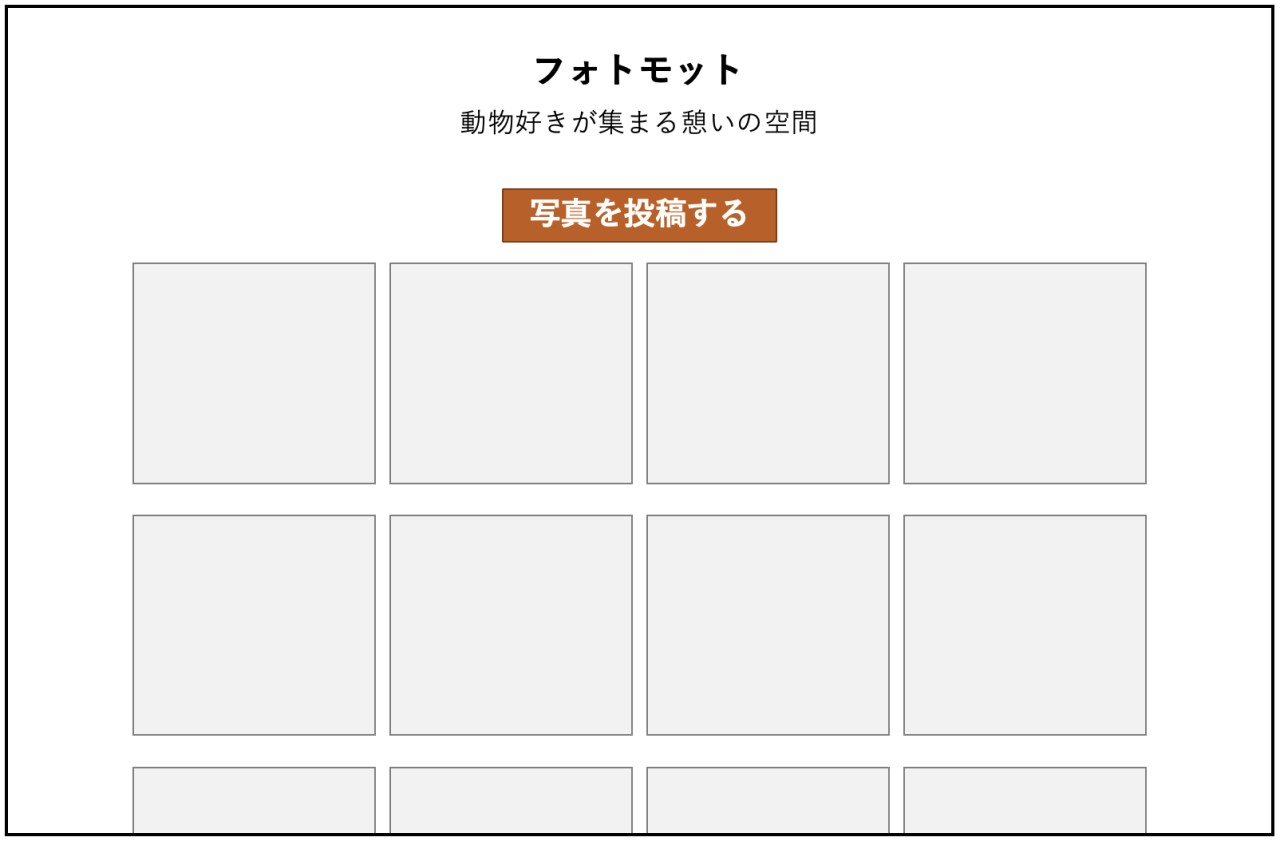 例えば、こんな感じの「動物好きのための投稿サイト」を作るとします。