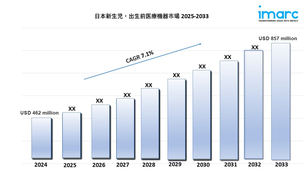 IMARCグループの最新レポートによると、日本の新生児・妊婦用デバイスの市場規模は2024年に4億6,200万米ドルに達しました。今後、IMARCグループは、2025年から2033年にかけて7.1%のCAGRを示し、2033年までに市場が8億5,700万米ドルに達すると予測しています。