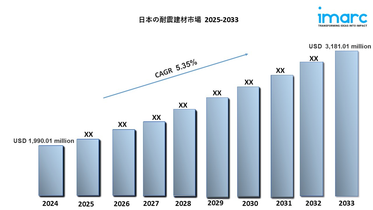 IMARCグループの最新の調査出版物「日本耐震建築材料市場レポート:タイプ、用途、地域別2025-2033」によると、 日本の耐震建材市場規模2024年には19億9,001万米ドルに達しました。IMARCグループは、2033年には市場規模が31億8,101万米ドルに達し、2025年から2033年にかけて5.35%の年平均成長率(CAGR)で成長すると予測しています。この市場は、厳格な耐震建築基準、頻繁な地震活動、強靭なインフラへの需要の高まり、そして材料技術の進歩によって牽引されています。