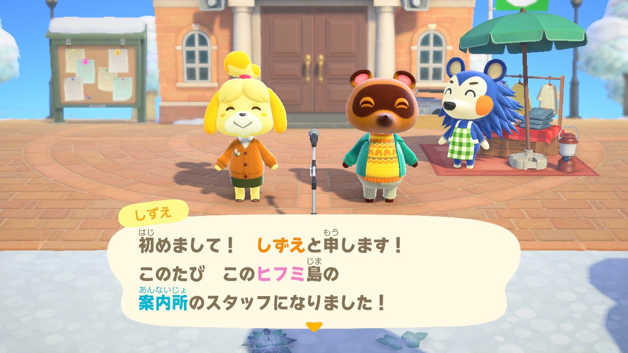 始めてからようやく対面することができました✨案内所の住民カウンターでのお仕事と毎朝の放送を請け負う事になったそうです。これから島のアイドルとして崇めたいと思います⋯。