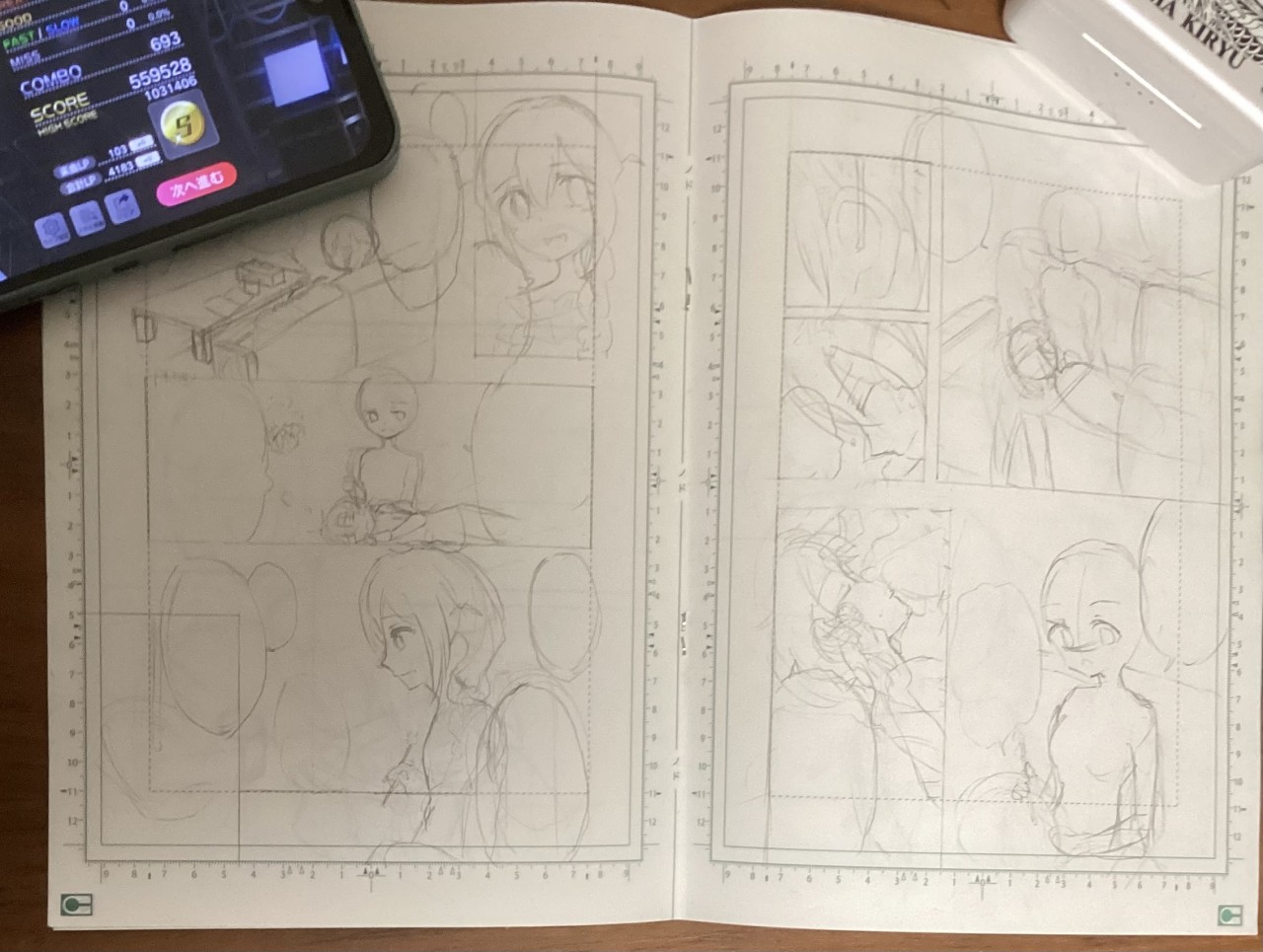 漫画を描くのは高校生以来なので感覚を思い出しながら少しずつ進めております。始めたとは言ってもすでにネームはできてるんですけどね……なかなか下書きが進まなくて(苦笑)