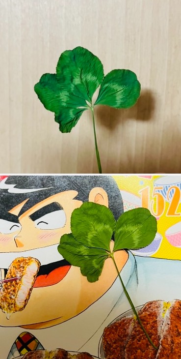 四葉のクローバーを頂いたのでクッキングパパで1日押し花したら