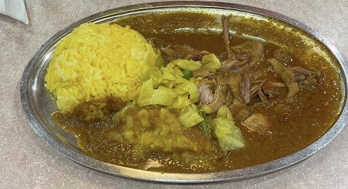 ◼︎水っぽいカレールゥにライスと温野菜、マッシュポテト、骨付き肉(目の前でこそぎ落としてくれる)をぐっちゃぐっちゃに混ぜてバクゥ‼︎とするカレー