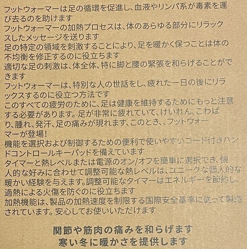 これが私の使ってる電気フットウォーマーの箱です。箱かい。