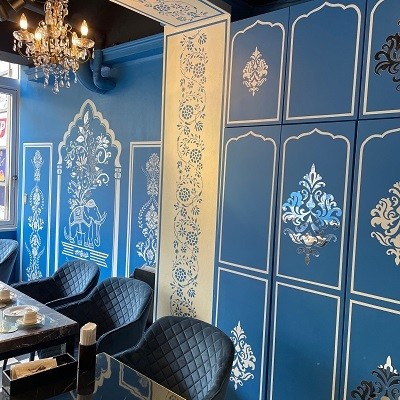 ▲青を基調とした店内、美しい…