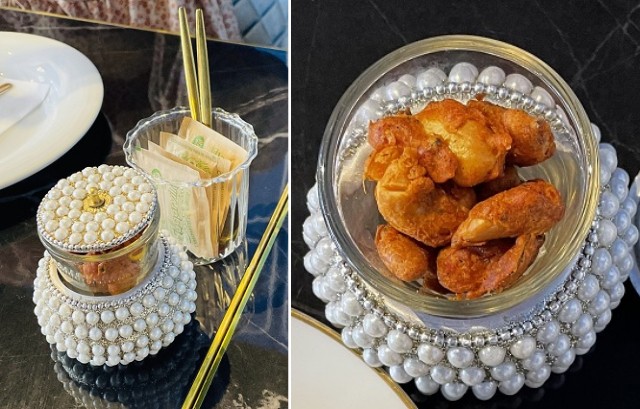 ちょいピリ辛豆。高貴な入れ物に入ってました。酒飲みじゃないけど酒に合いそう。