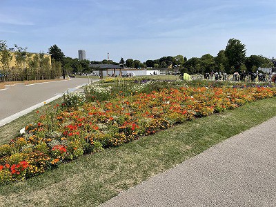 周りの花壇と紫陽花がとても綺麗でした。キャンプとか花見とか出来るらしい。