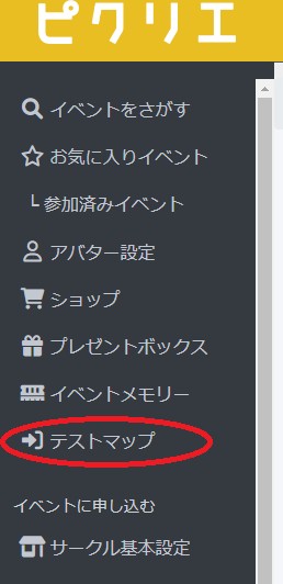 ピクリエにログインしたらメニューバーにある「テストマップ」こちらを開いて操作したらなんとなく方法がつかめそうですね。