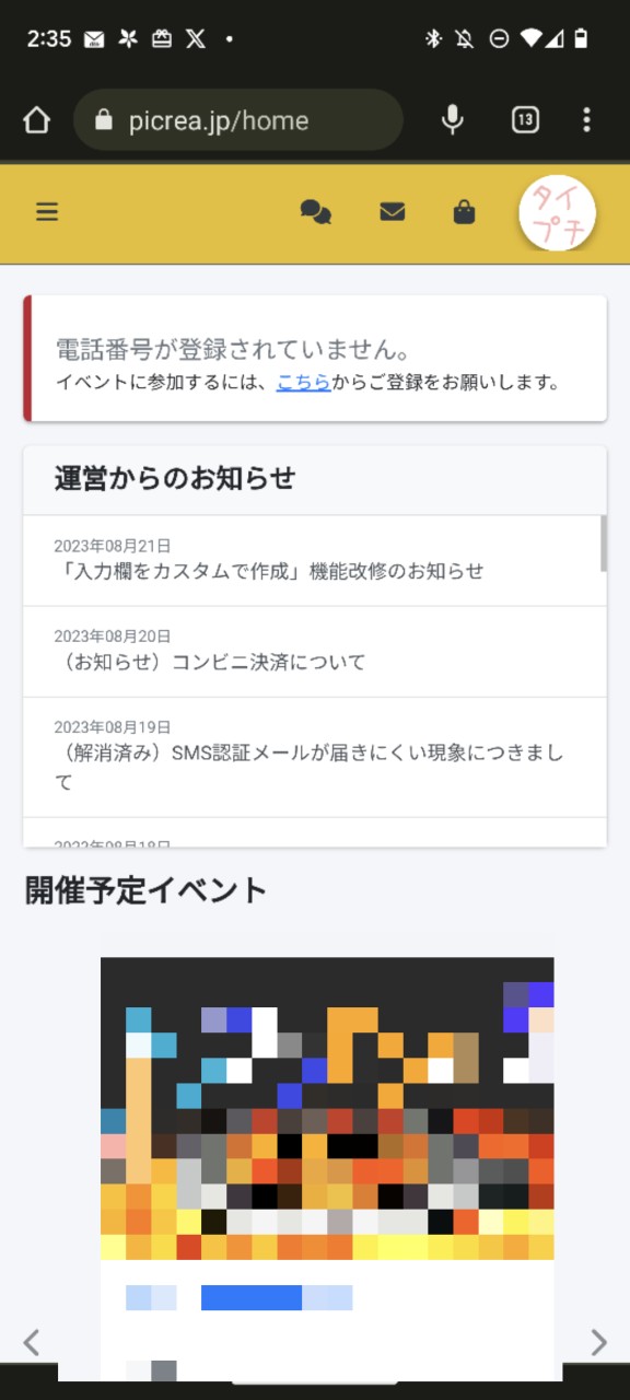 「運営からのお知らせ」とか「開催予定イベント」とか見れていいですね。