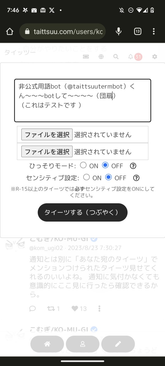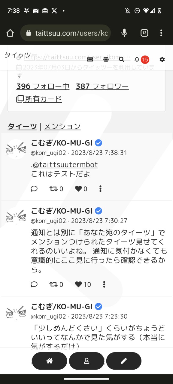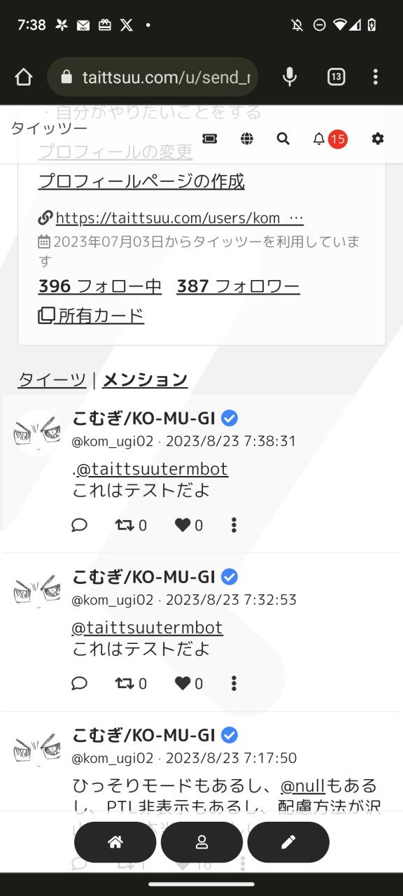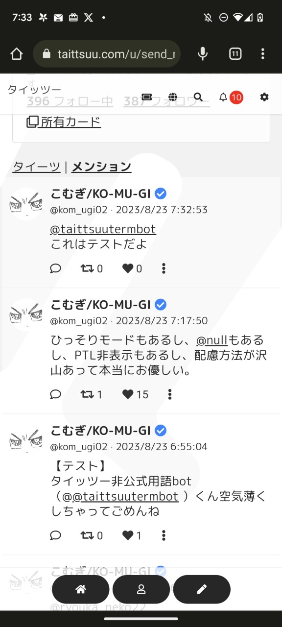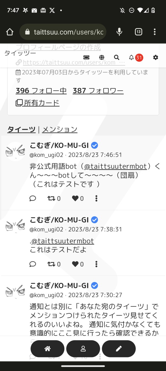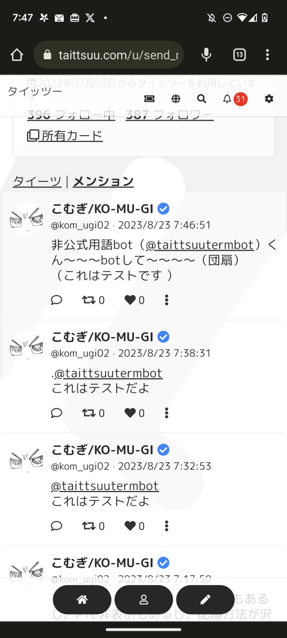 おはようございます、こむぎです。今日は早速実装された「メンション」を使ってみようと思います。