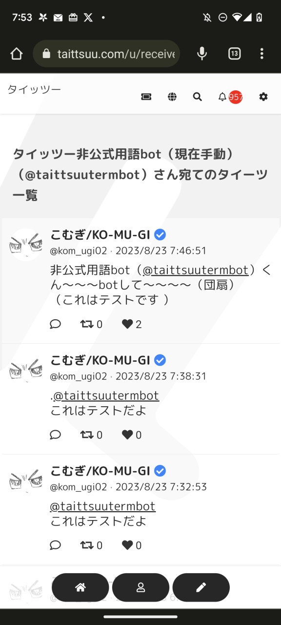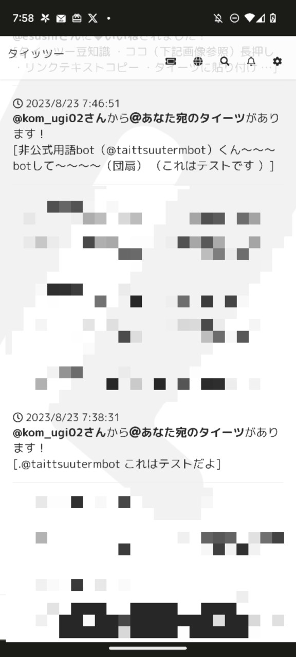 上記1, 2, 3 全てのメンション付きタイーツが表示されてますね。