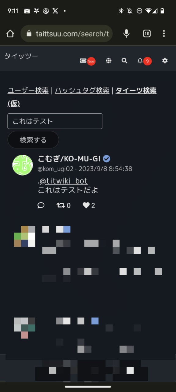 第三者TLには表示されるがタイーツ検索に表示されない