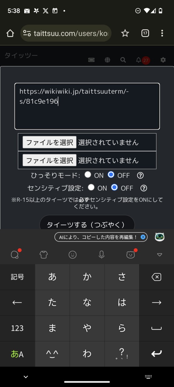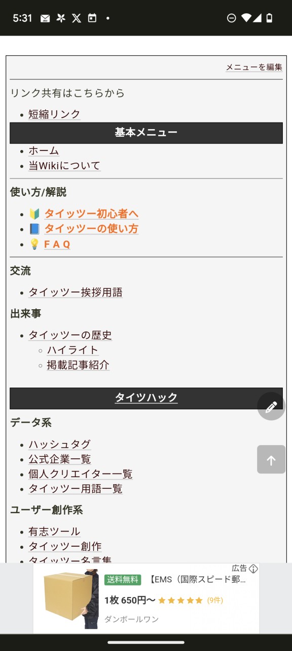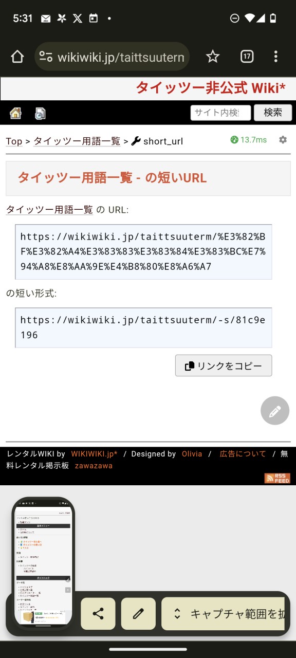 「タイッツー非公式WikiのURL」といえば、下記のような長ったらしいURLになってしまい、タイーツするとき煩わしいなと思った方、いるんじゃないでしょうか。