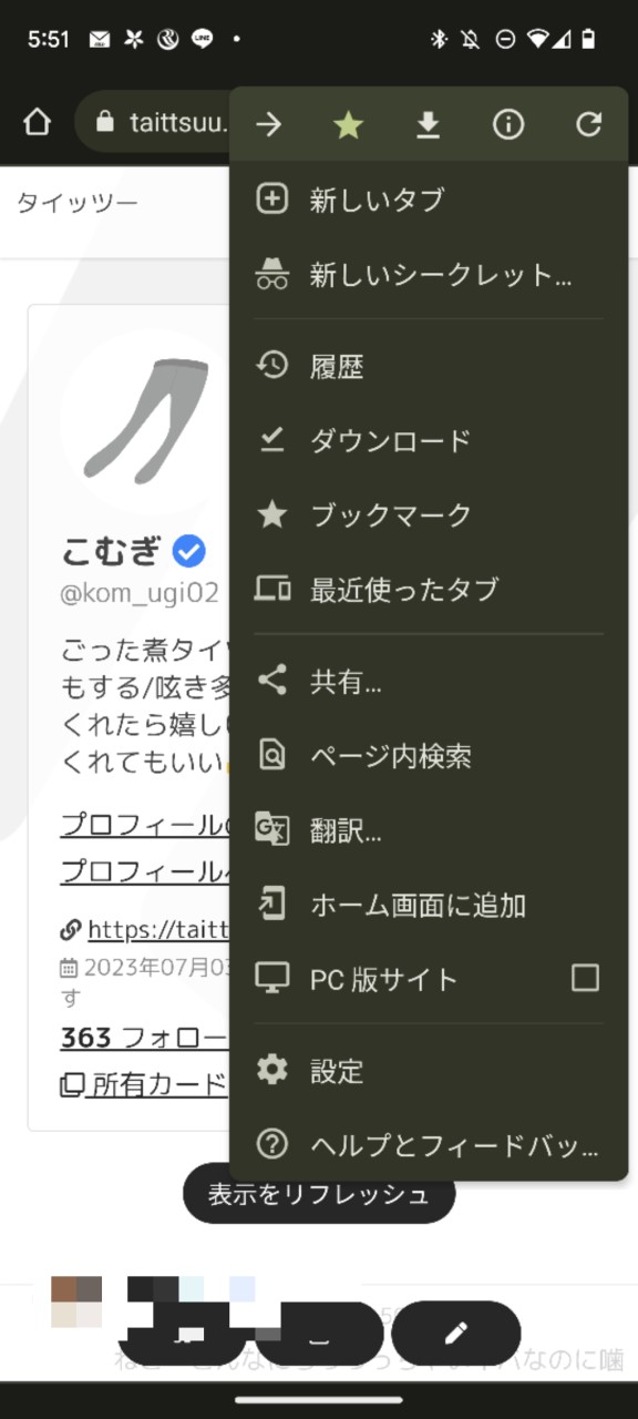 2-2. 三点バーから「ホーム画面に追加」を選択
