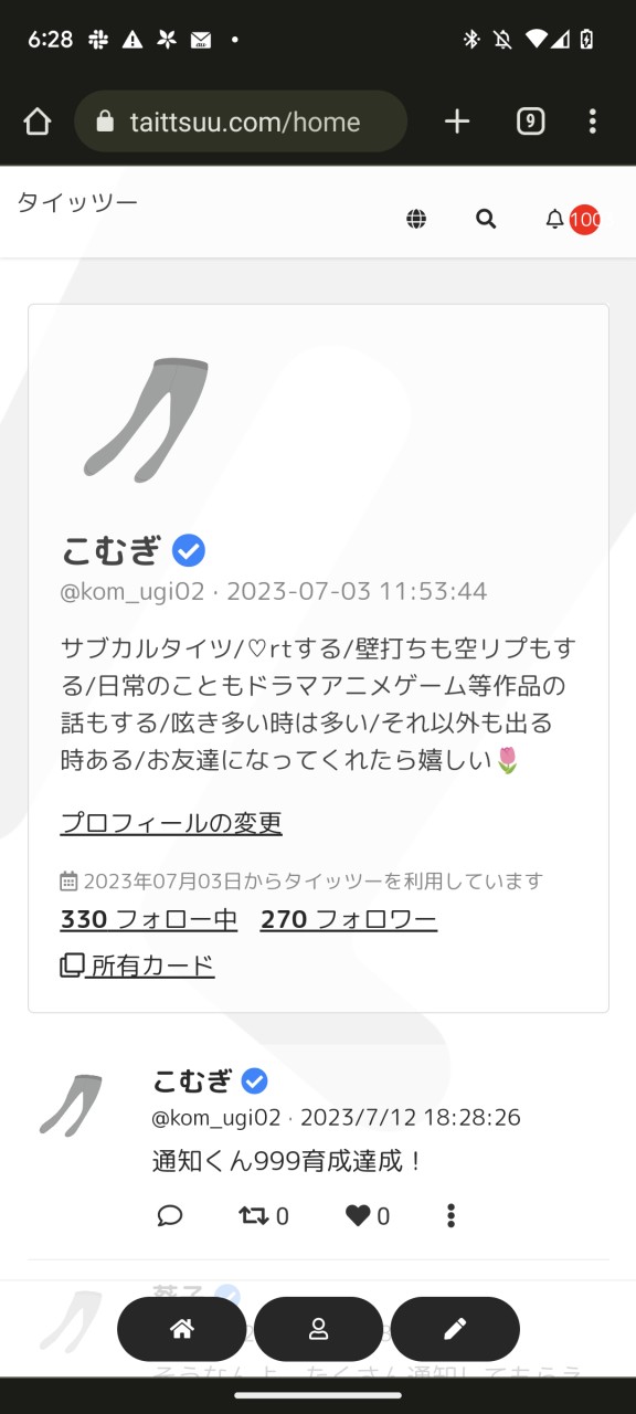 スマホを手に取り、ブラウザを立ち上げ、ブックマークからタイッツーへ