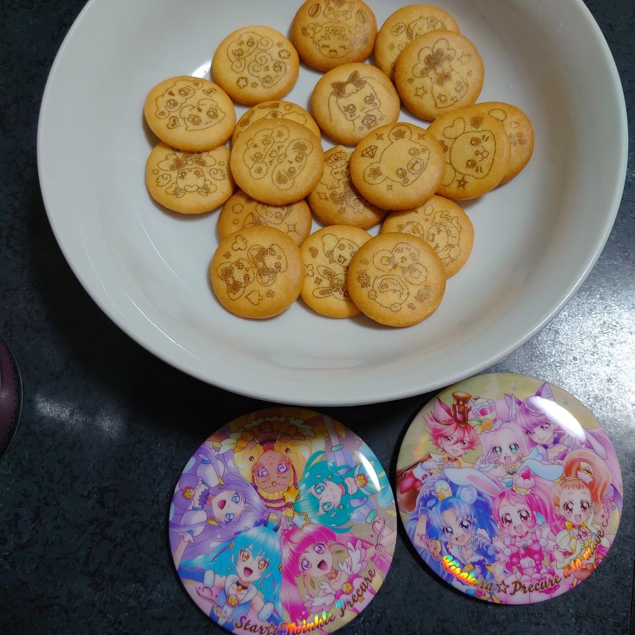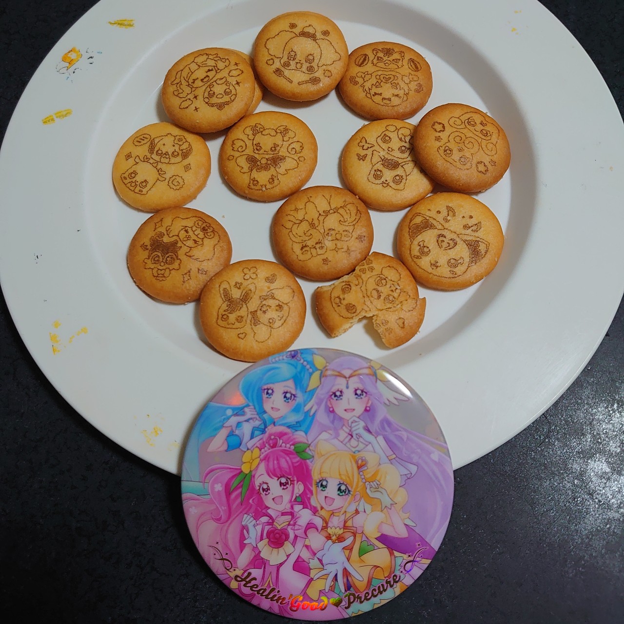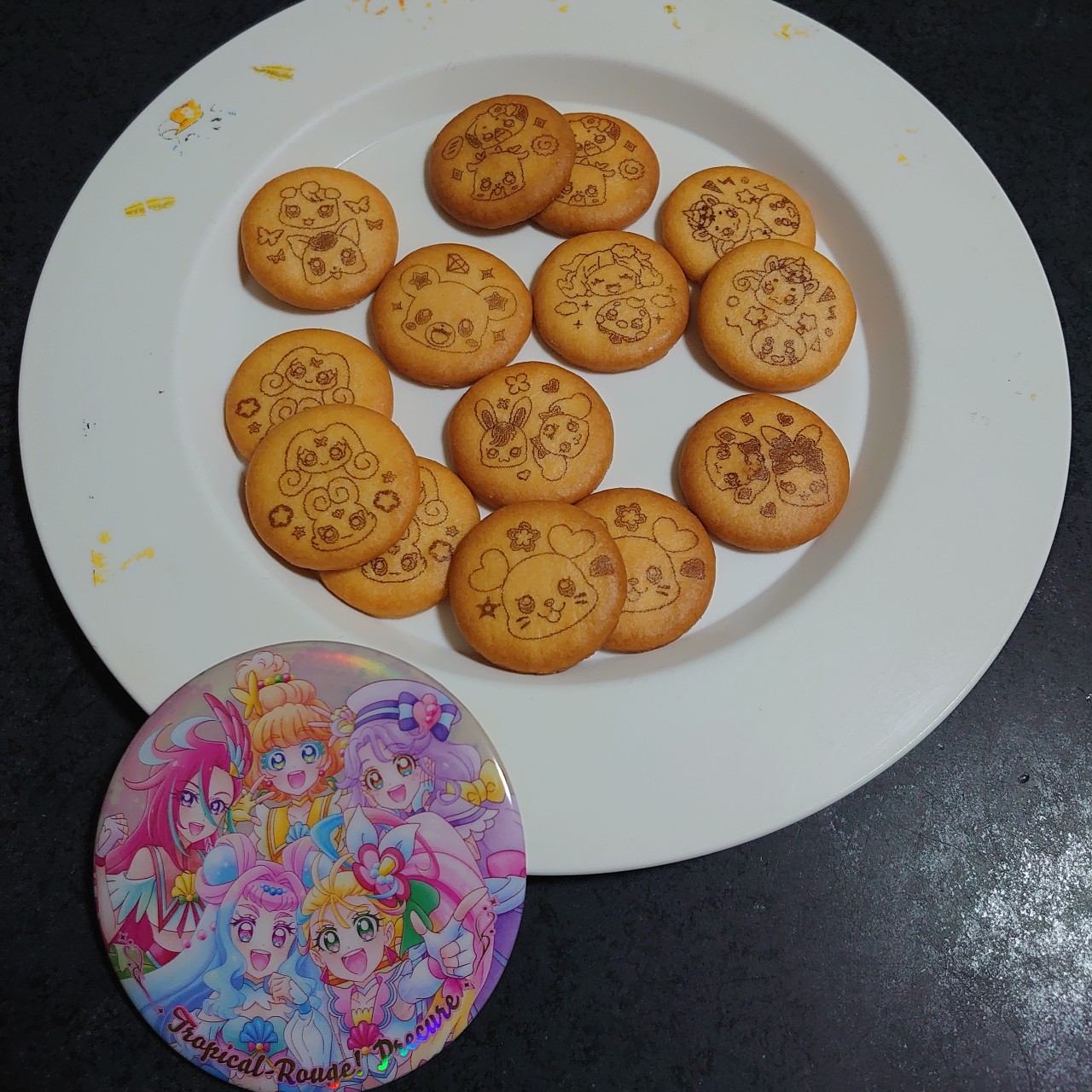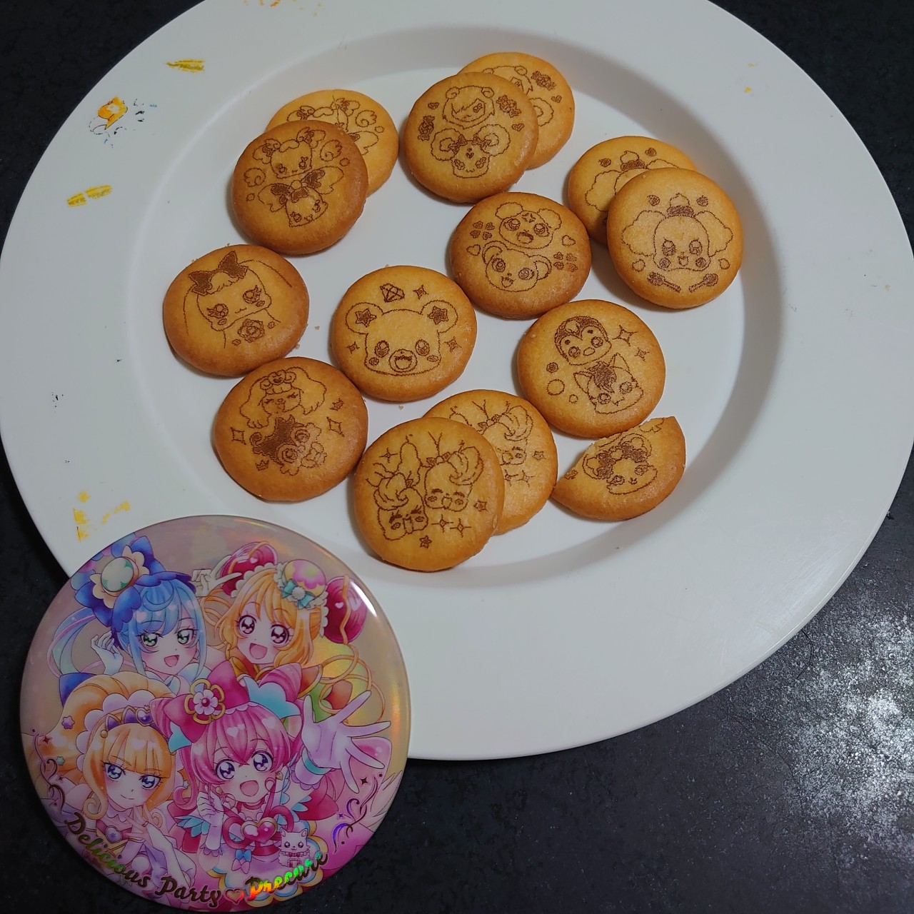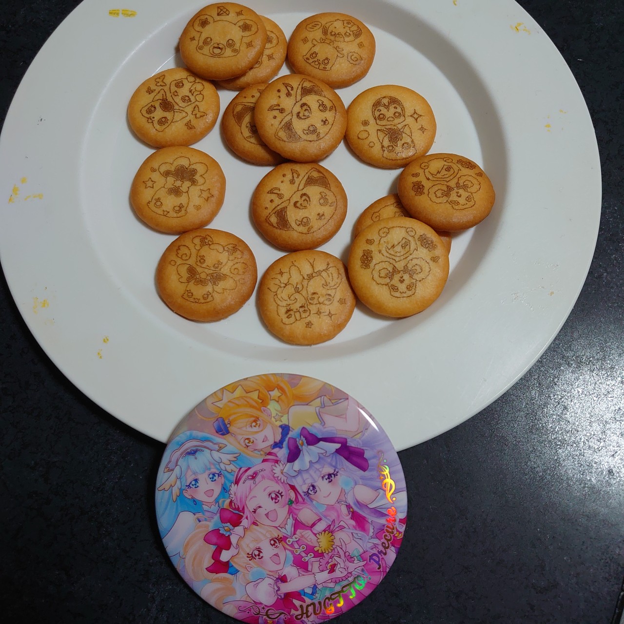 1月発売の「プリキュアオールスターズ BIG缶バッジBiscuit -20th Anniversary-」を今更食べています。