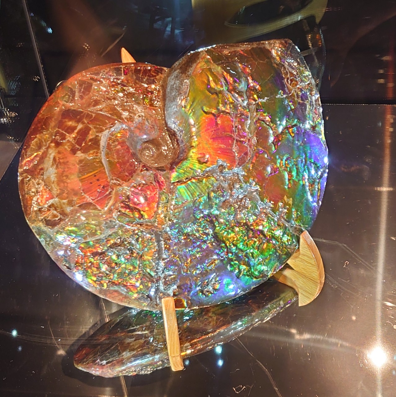 次のトンネルにはアンモナイトとアンモライトがいくつも展示されていた。鉱物が好きなため思わずテンションが上がる。