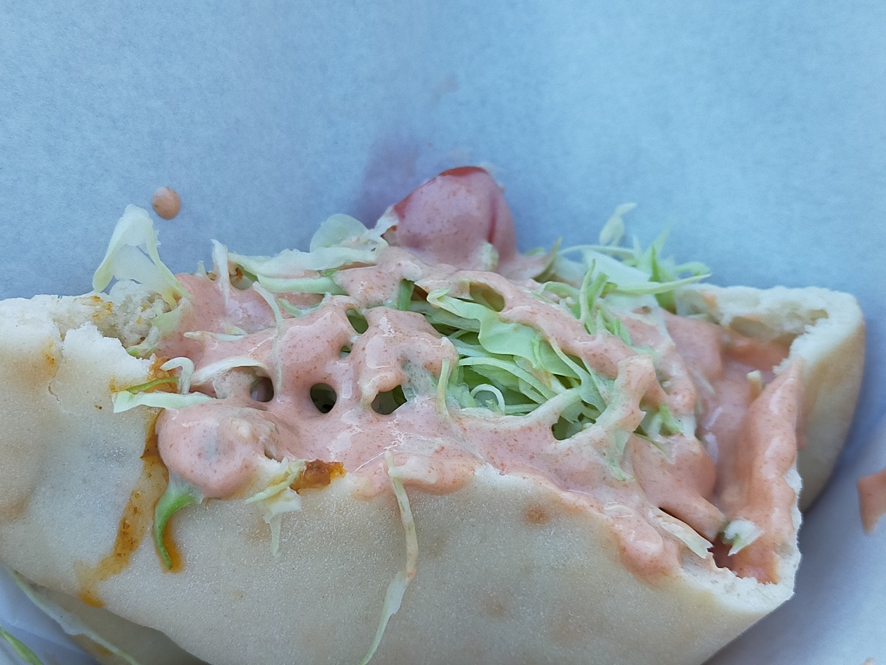 キャベツとソースで見えないけど、鶏肉はちゃんと入っている。
