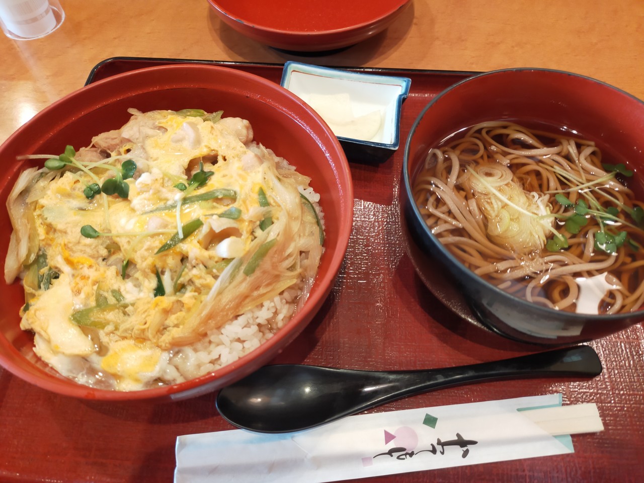 深谷ねぎ入り親子丼とそばのセット